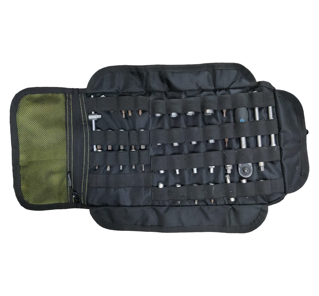 Can be used both on the bike and off the bike as a standalone tool organizer.